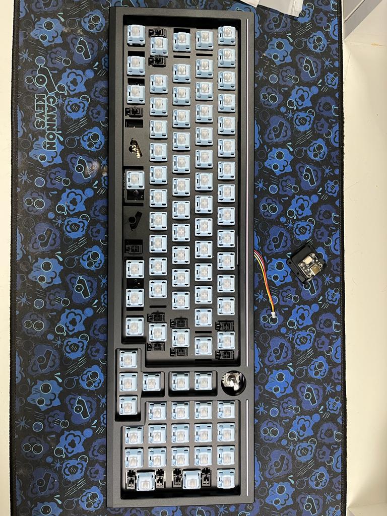 Rest your PCB and plate assembly on the bottom case, ensuring that the JST cable goes through the hole meant for the accent piece.