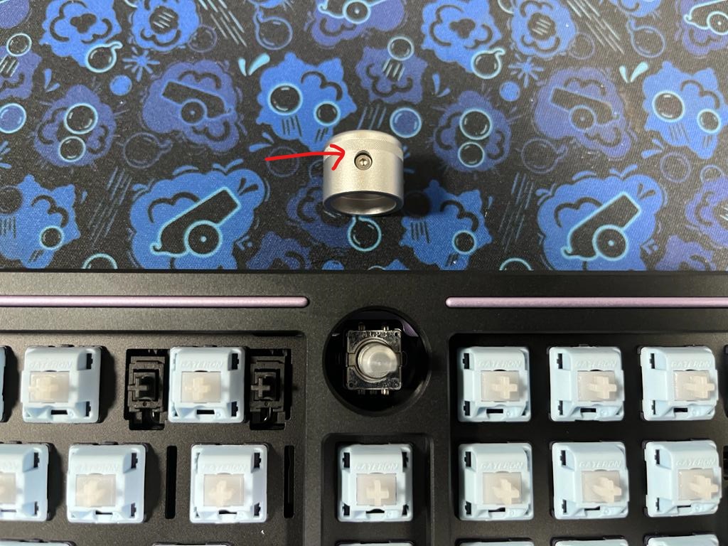 Now we have to disassemble and prepare the case to add the plate and PCB assembly. Begin by removing the accent piece from the bottom of the case. You'll need the 1.3mm hex key.