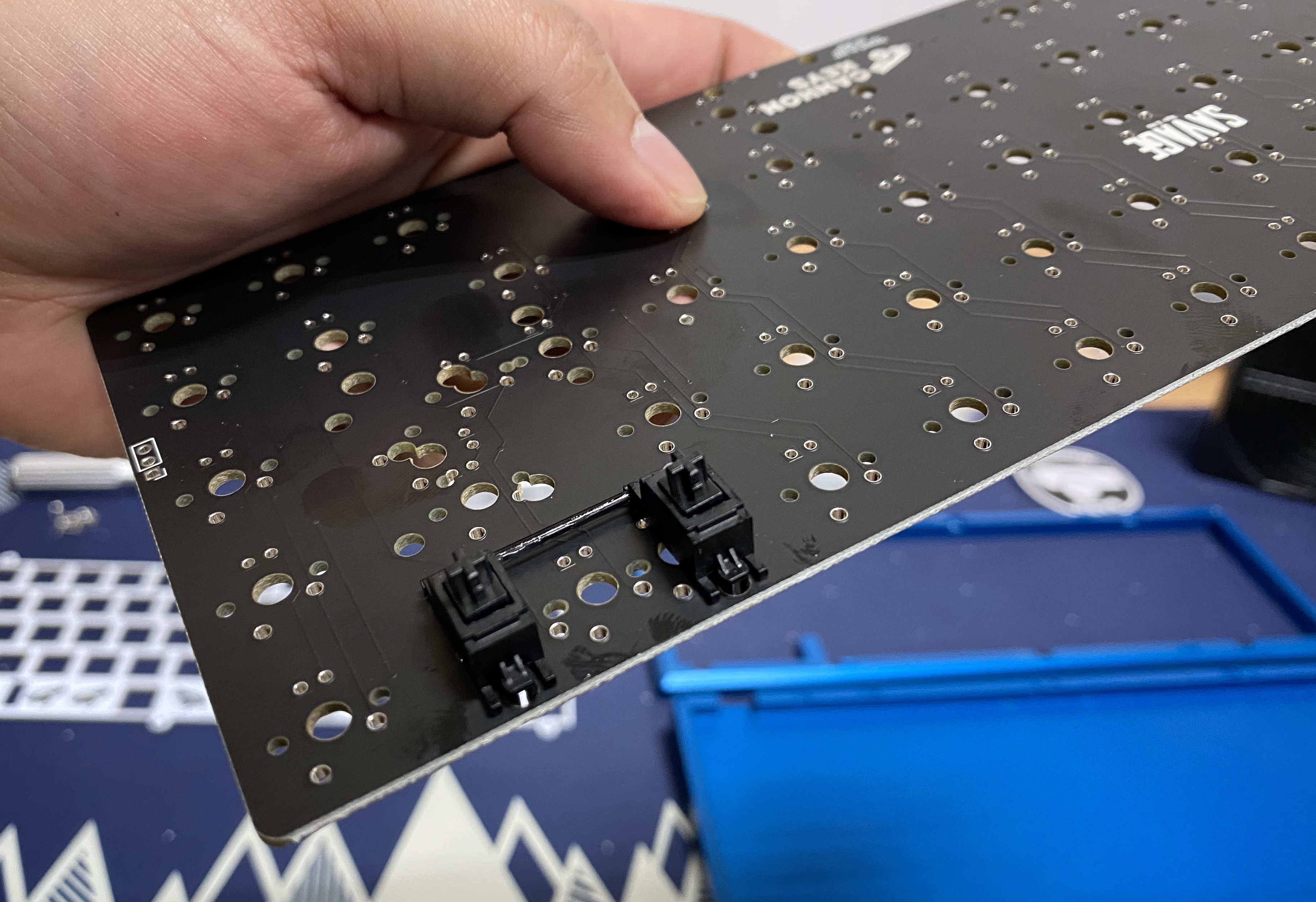First, we have to add stabilizers to our PCB. We highly recommend lubing stabs.