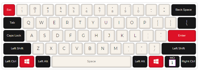 * | ESC | 1 | 2 | 3 | 4 | 5 | - | ` | = | 6 | 7 | 8 | 9 | 0 | BACKSP |