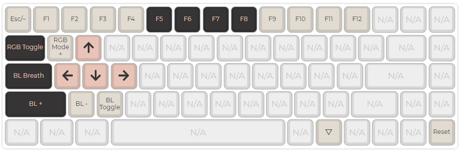 * | LCTRL | LGUI | LALT | FN | SPACE | SPACE | LEFT | DOWN | RIGHT | SPACE | SPACE | FN | RALT | RGUI | RCTRL |