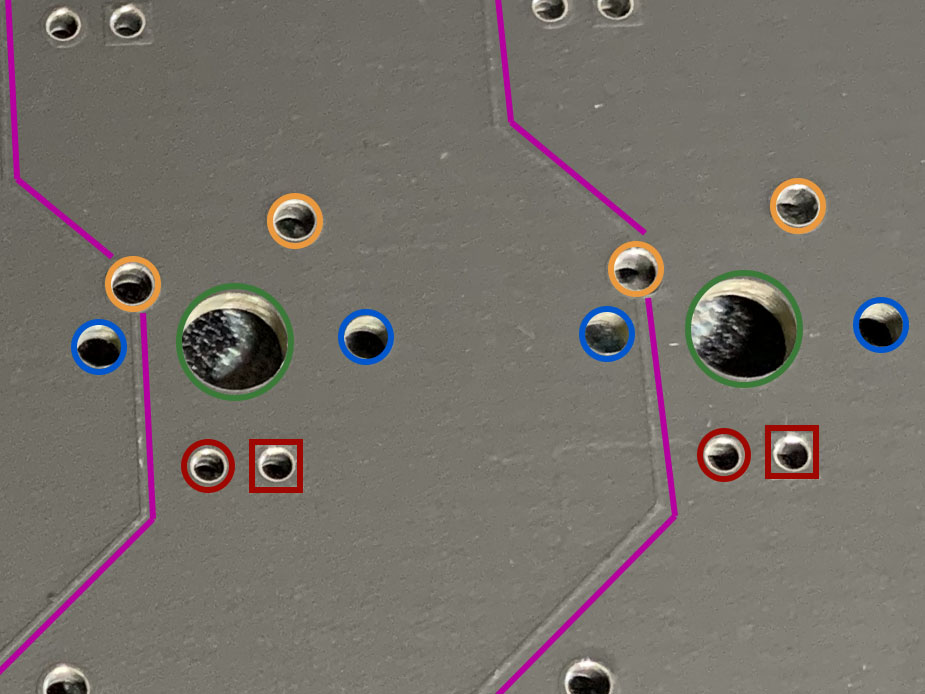 - Orange: where metal switch pins are inserted