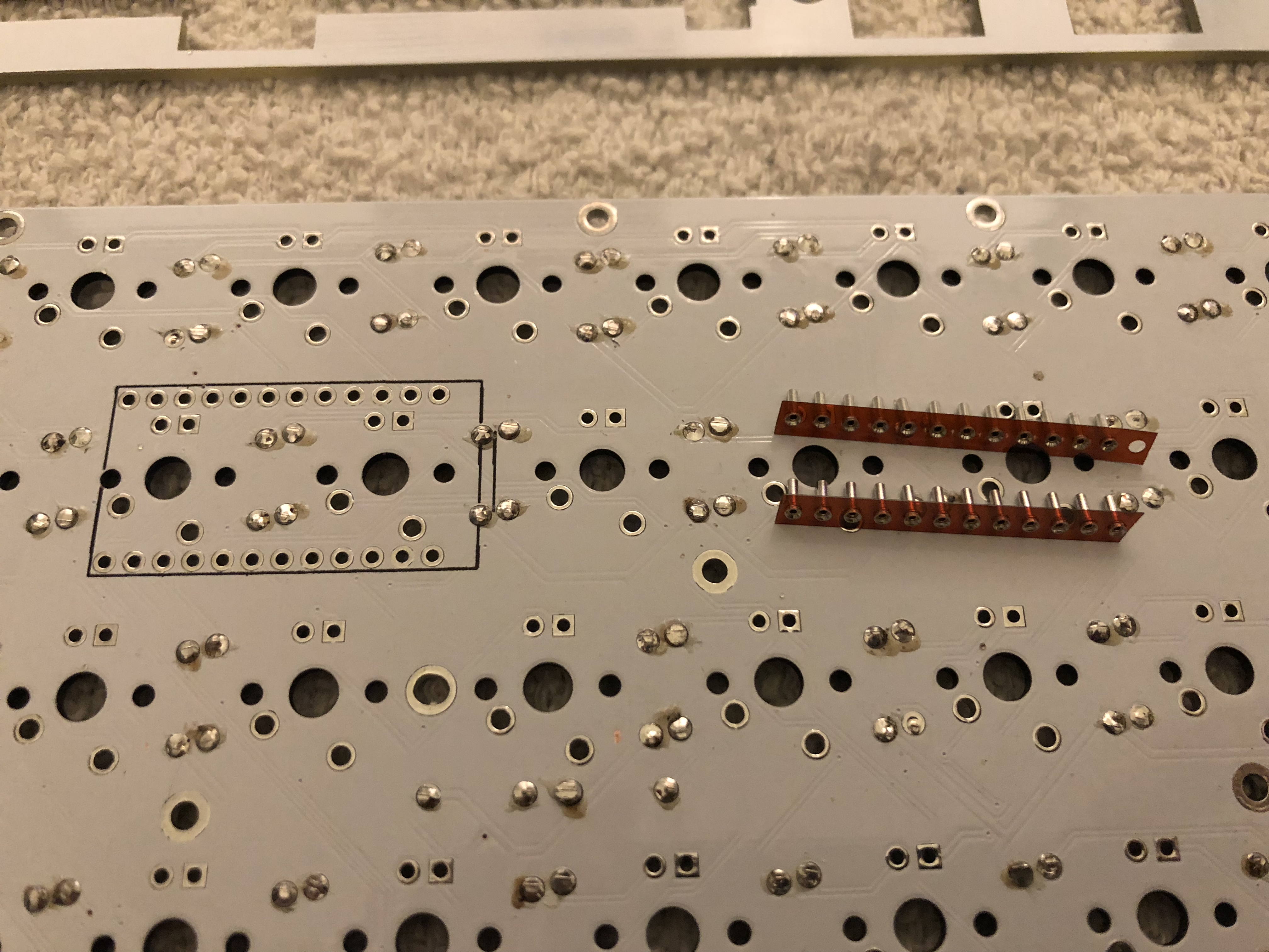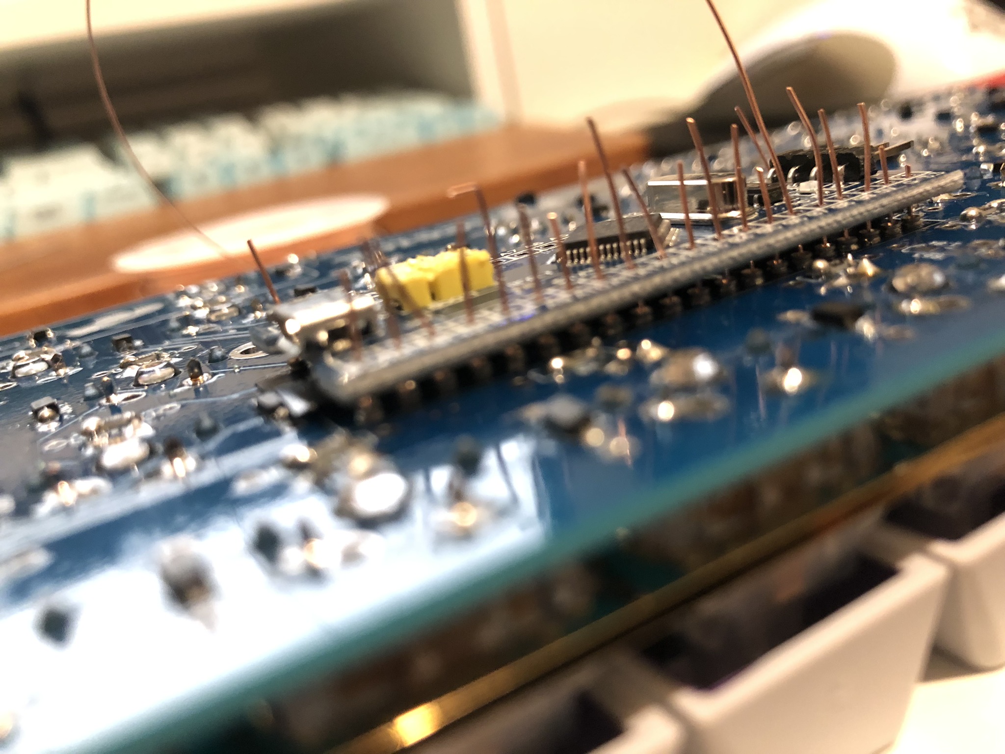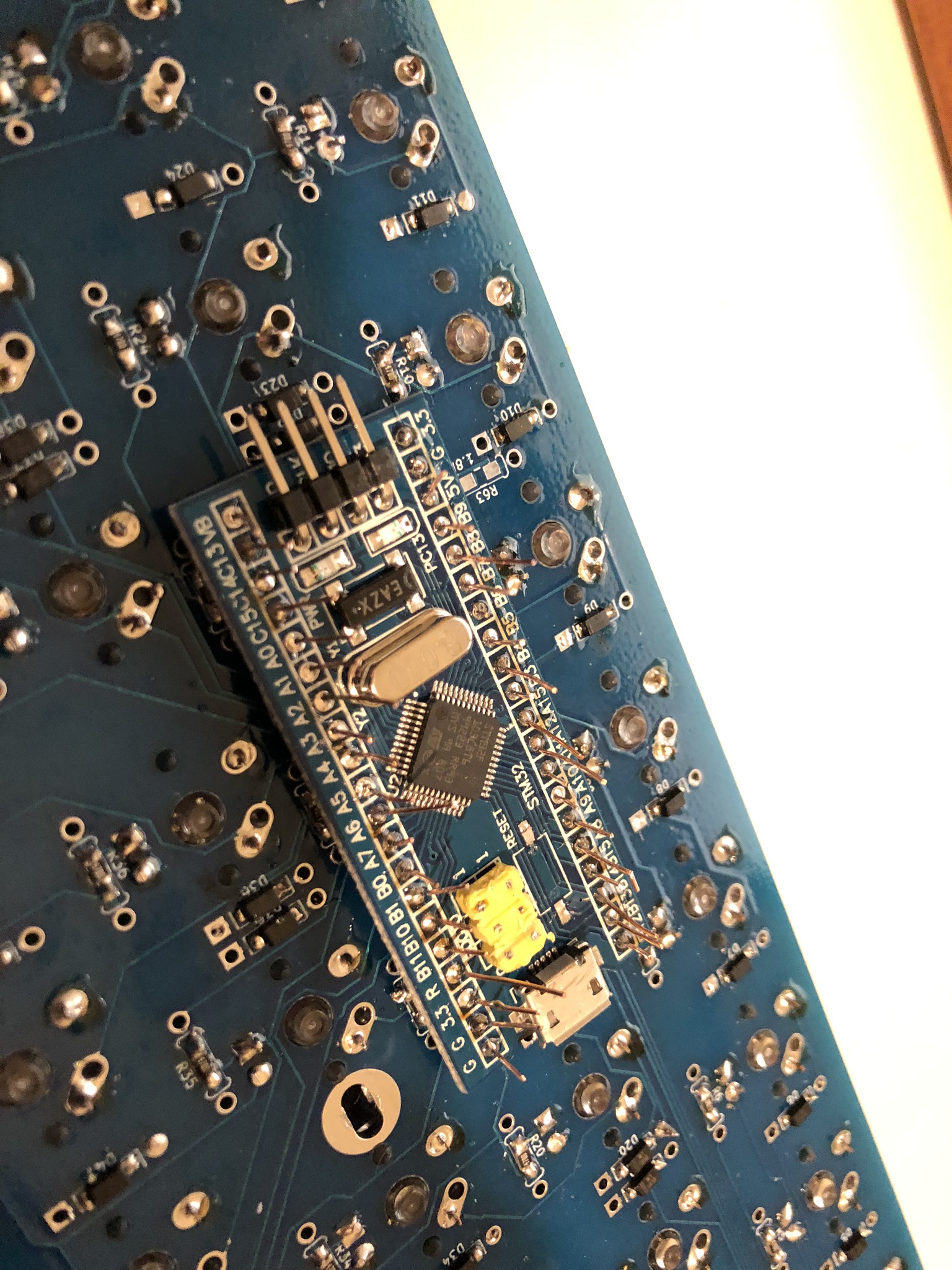 Some of these photos were taken using a Pro Micro based Luddite board. The same steps apply, just on your blue pill based board! You have 20 spots on each side, not 12.