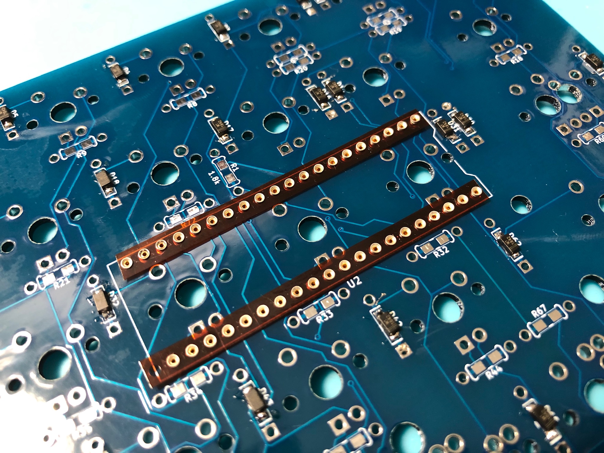 - Flip your PCB back around, making sure the sockets stay in their holes.